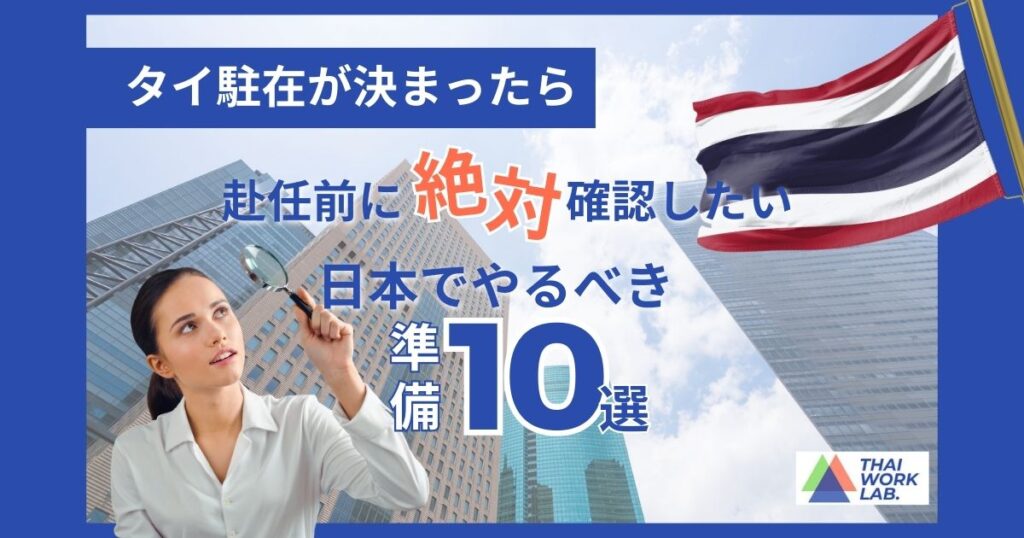 - 【タイ駐在】赴任前に必ず確認したい、日本でやるべき準備10選タイ駐在が決まったら、日本でしかできない準備があります。歯科や医療情報、銀行・携帯番号など、赴任後に「やっておけばよかった」と感じやすいポイントを中心に、駐在員本人が日本で確認・対応すべき準備を10項目で整理しました。